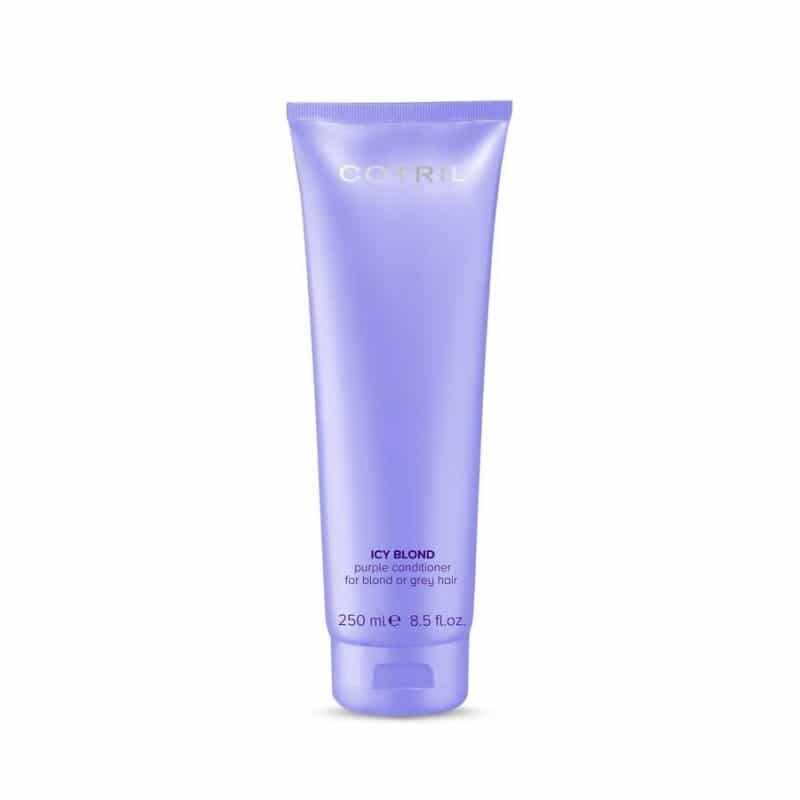 COTRIL Icy Blonde Purple après-shampooing violet idéal pour démêler et neutraliser les reflets chauds des cheveux blonds, décolorés et gris. Les actifs précieux et le pigment violet tonifient et redonnent hydratation et brillance aux cheveux blonds.